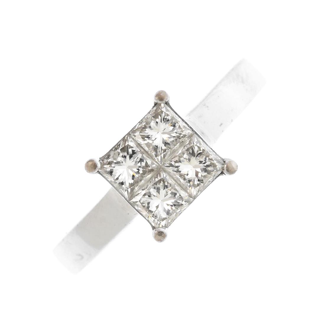 An 18ct gold diamond ring. Designed as a square-shape