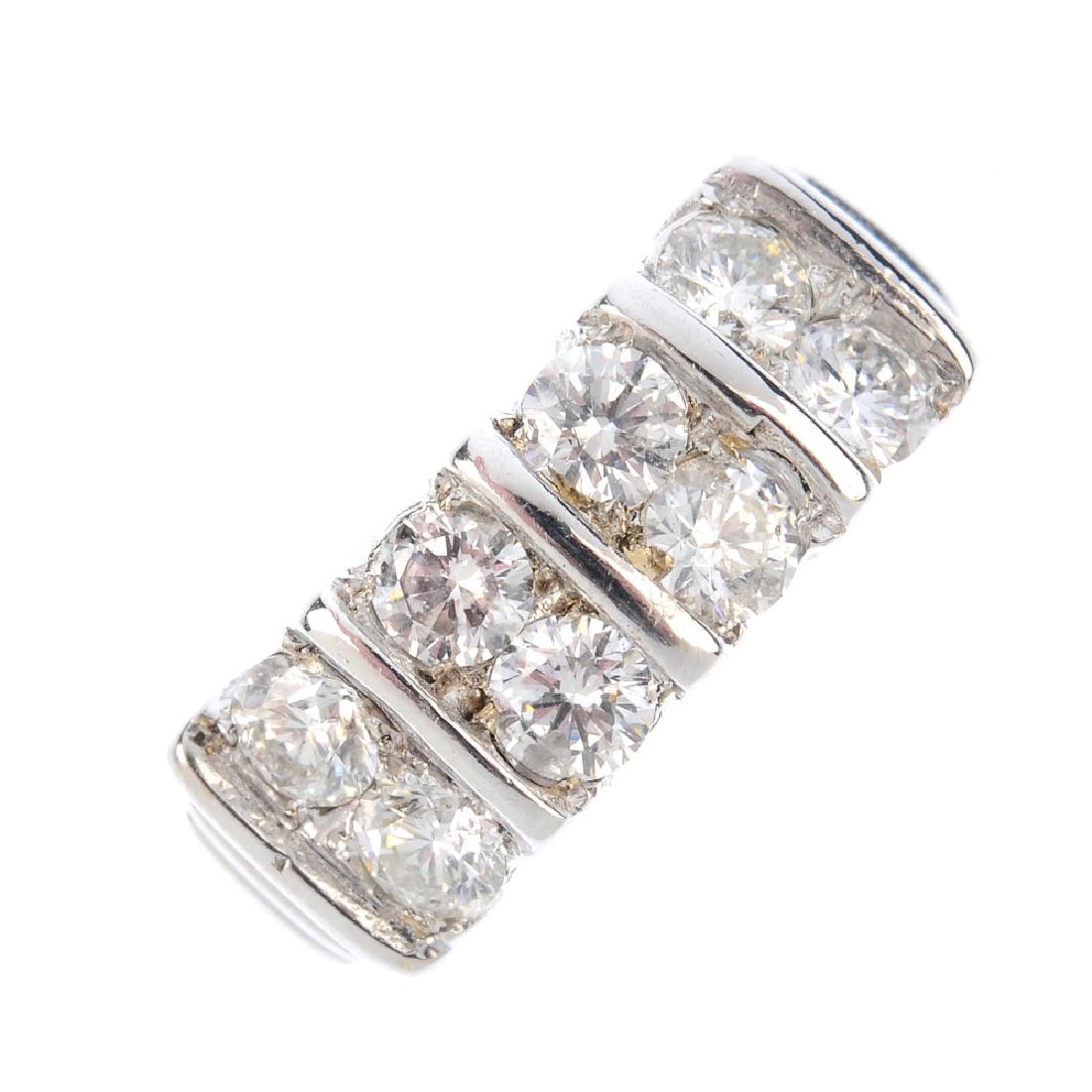 An 18ct gold diamond ring. Designed as two lines of