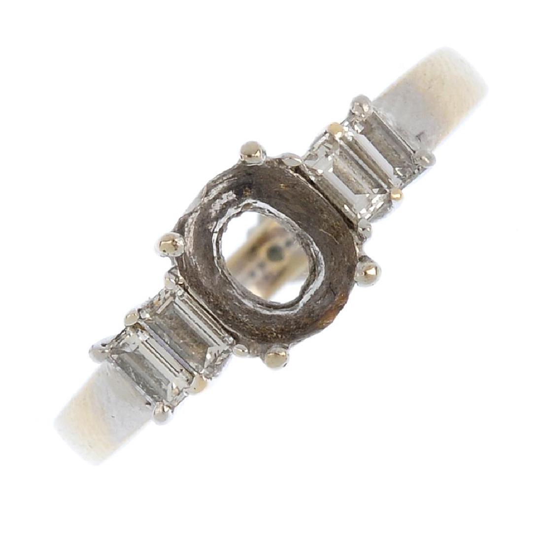 An 18ct gold diamond ring mount. The oval-shape mount,