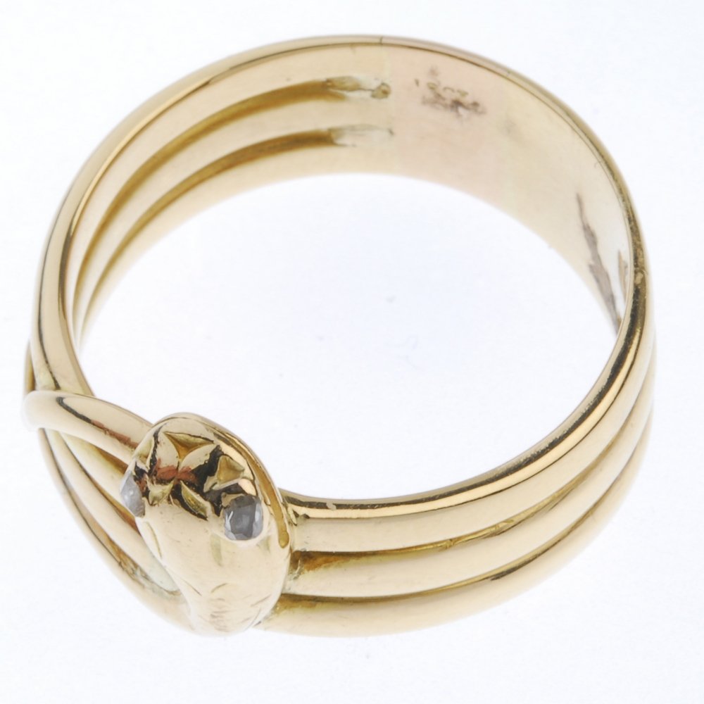 An 18ct gold diamond snake ring.