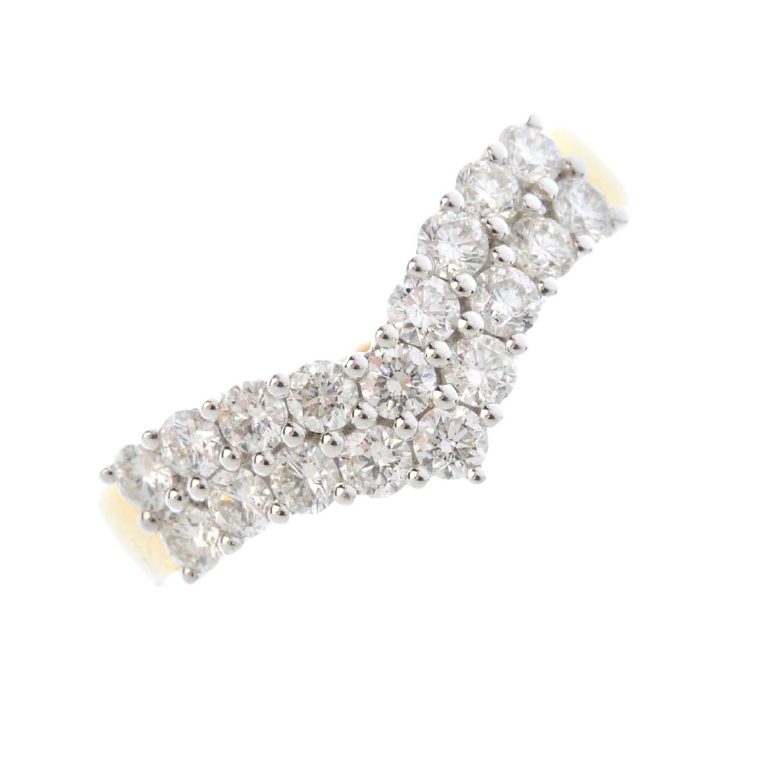 An 18ct gold diamond two-row ring. Designed as a