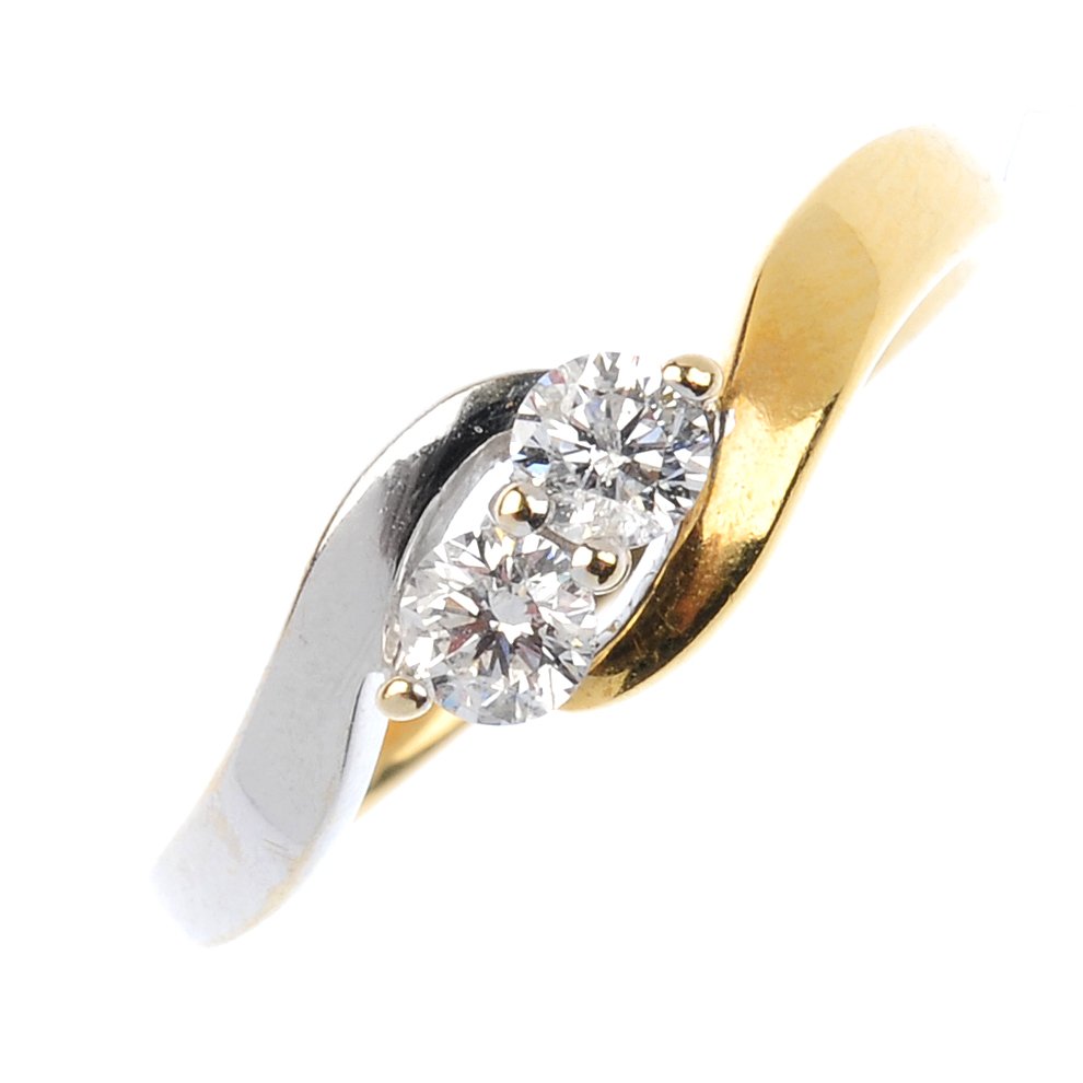 An 18ct gold diamond two-stone crossover ring. Of