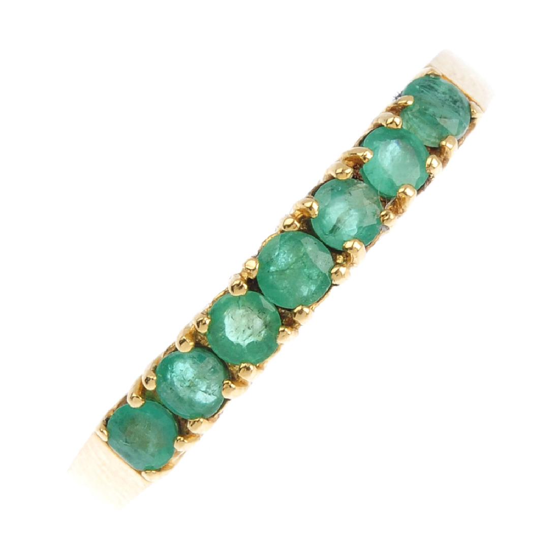 An 18ct gold emerald seven-stone ring. The