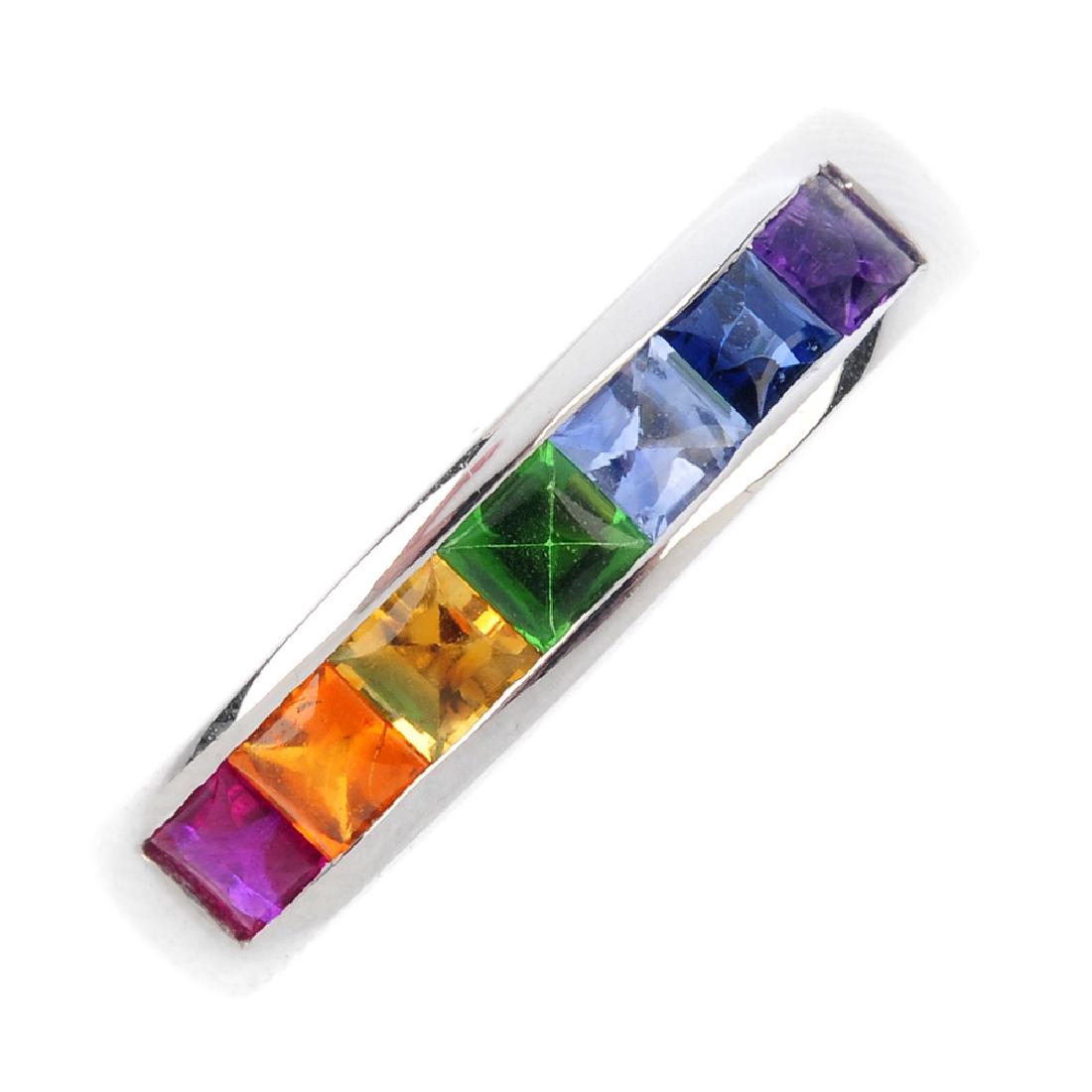 An 18ct gold gem-set half eternity ring. Designed as a