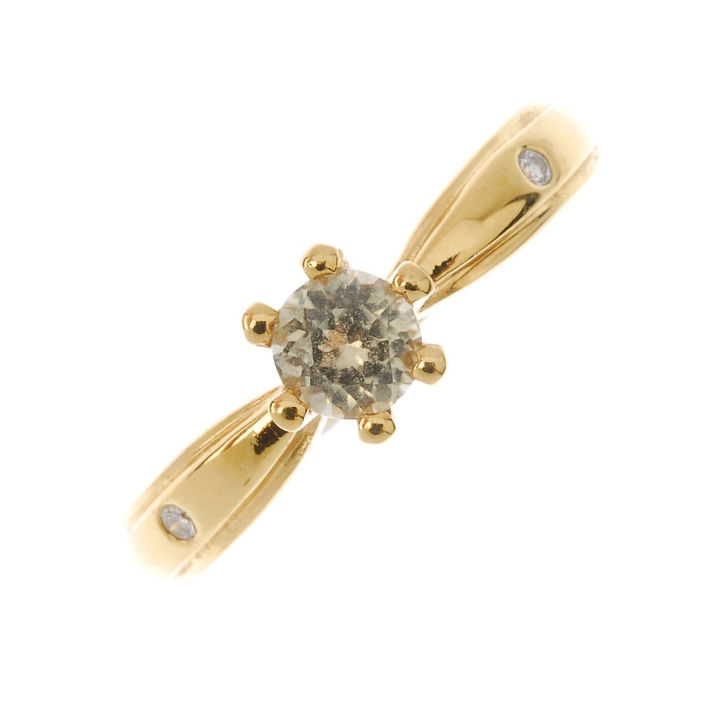 An 18ct gold gem-set ring. The circular-shape yellow