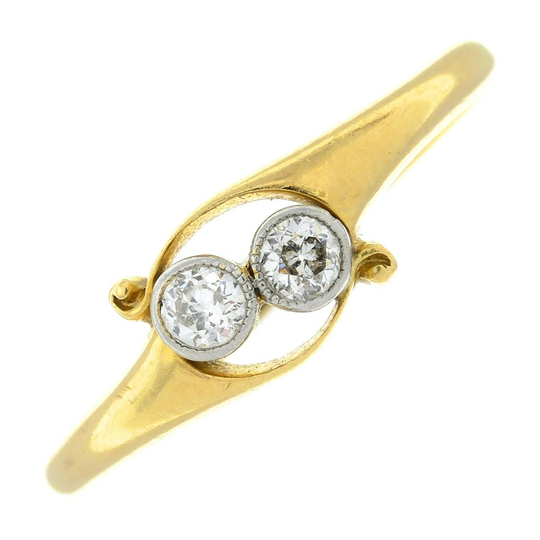 An 18ct gold old-cut diamond two-stone crossover ring.