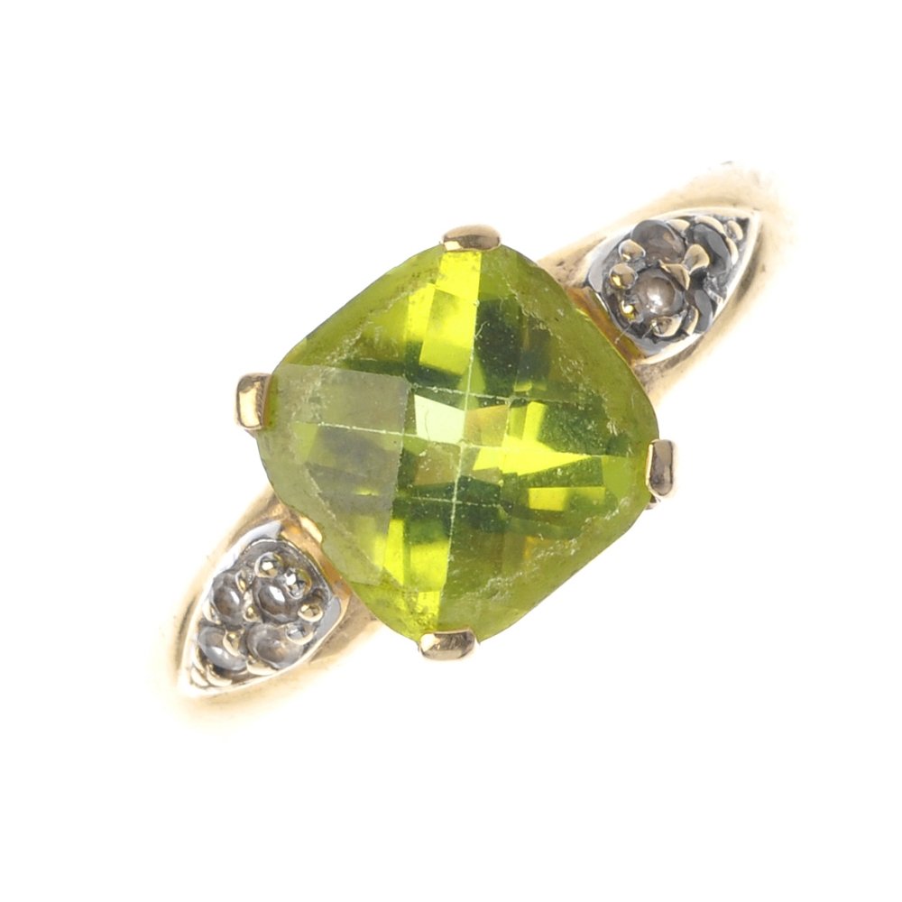 14K Yellow Gold 10.07ct Peridot and 1.69ct Diamond Ring