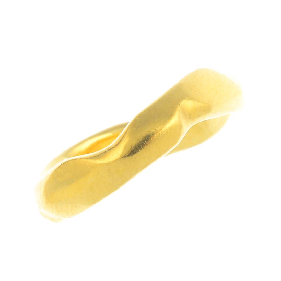 An 18ct gold ring. Designed as an undulating band.