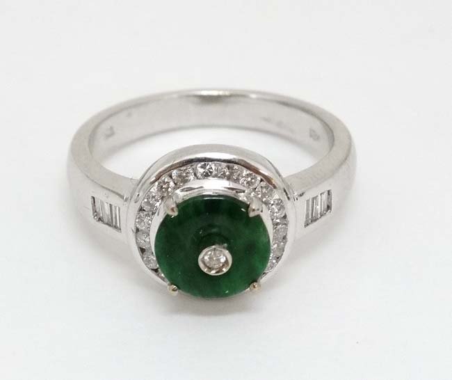 Anniversary Ring Imperial Jade/Diamond 2.98Ct 14k W/g