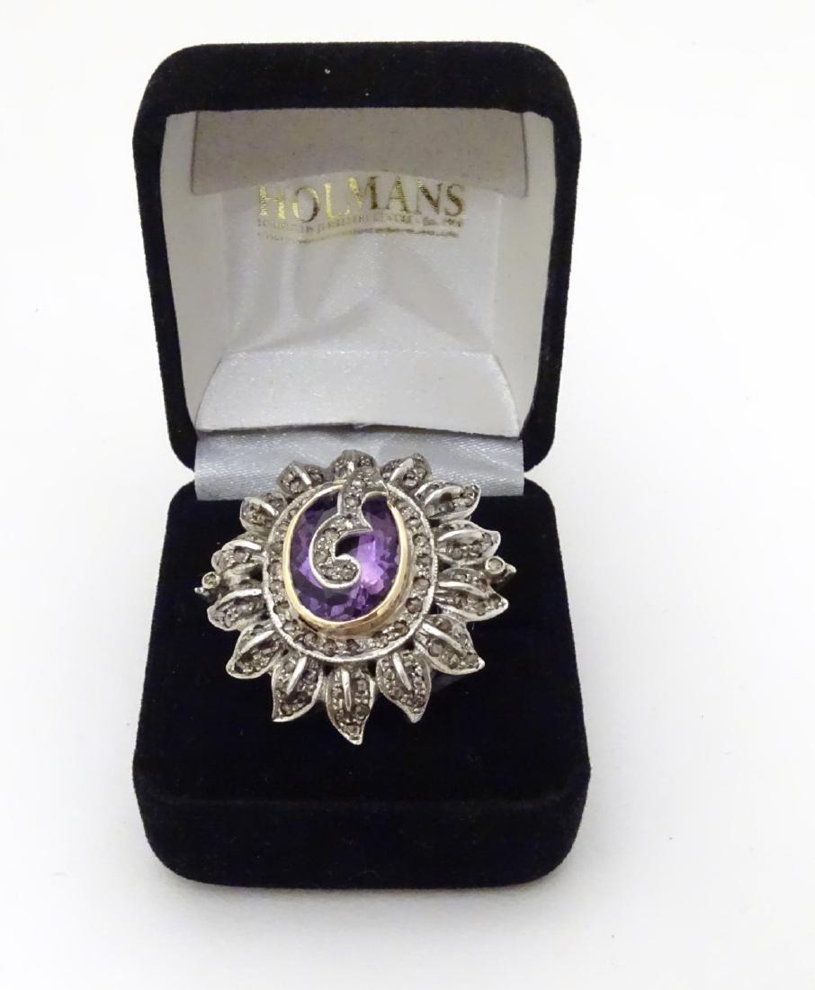 An 18ct gold ring set with large central amethyst