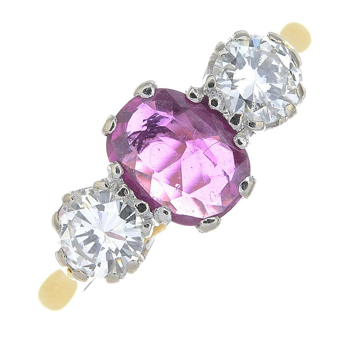 An 18ct gold ruby and brilliant-cut diamond three-stone