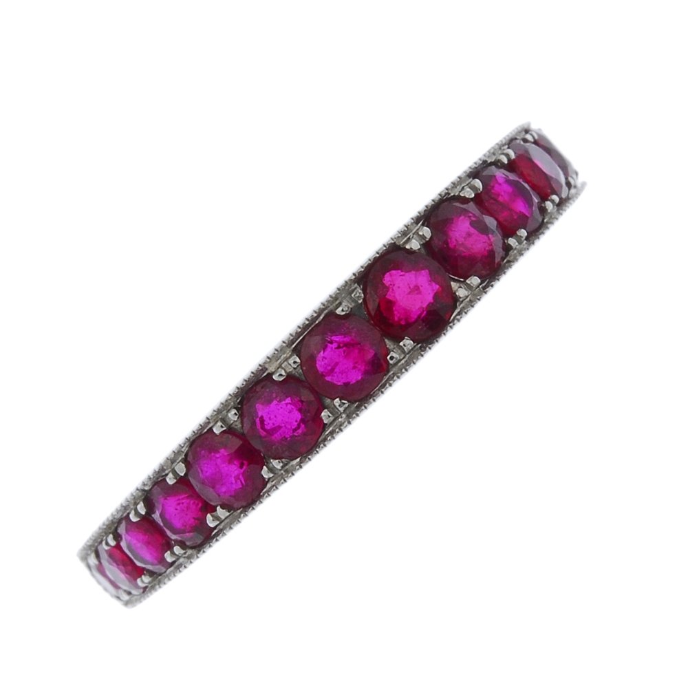 An 18ct gold ruby half-circle eternity ring.