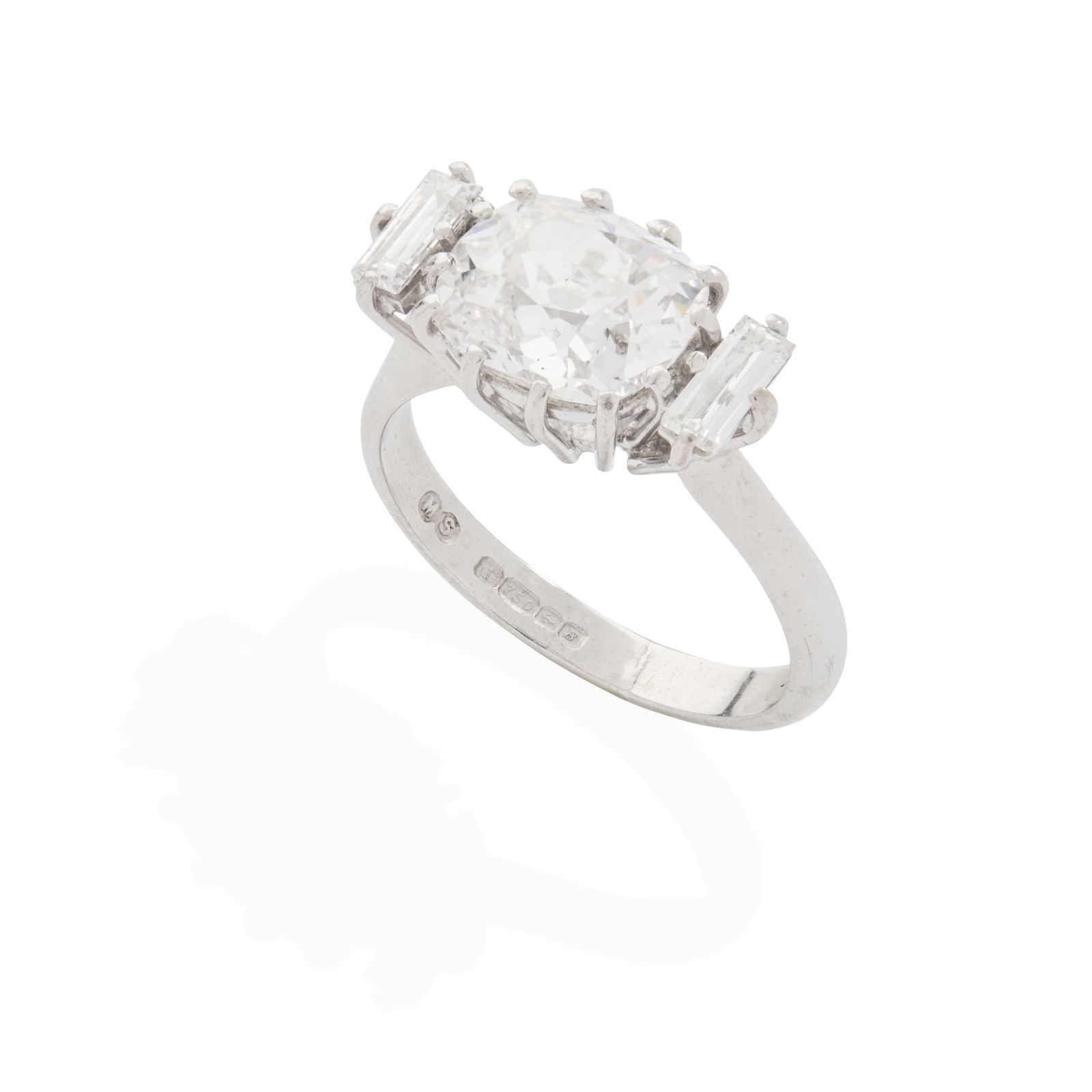 An 18ct white gold diamond three-stone ring