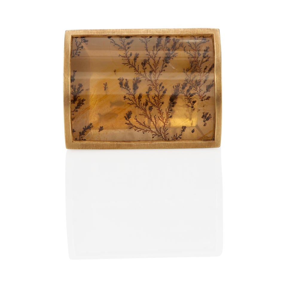 AN 18K GOLD AND LANDSCAPE AGATE RING