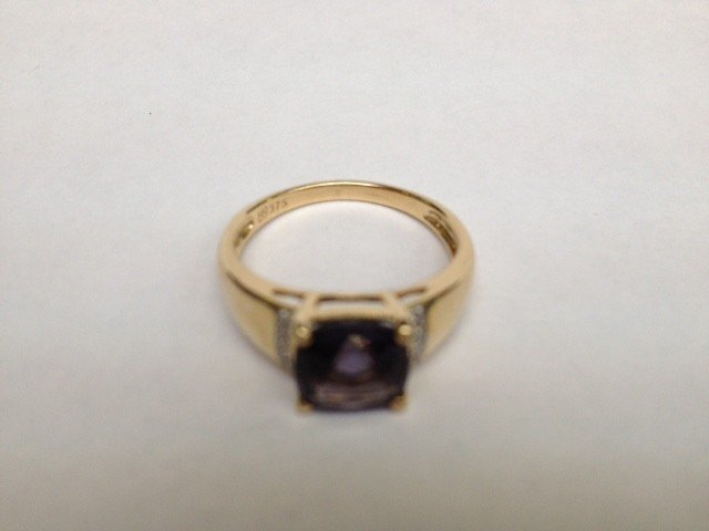 An 9ct Amethyst and Diamond ring Size P
