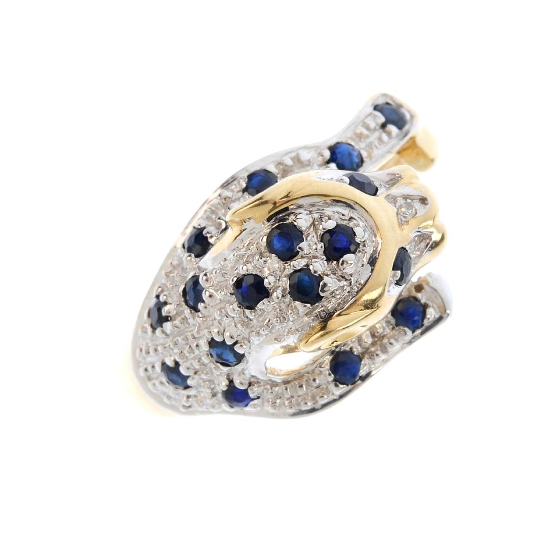 An 9ct gold sapphire and diamond leopard ring. Designed