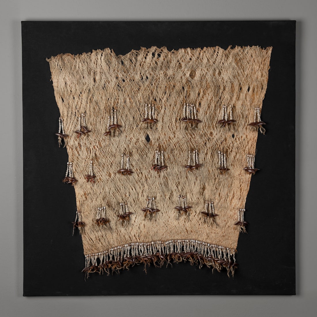 Framed African Kirdi Beaded Modesty Apron Cowrie Fringe