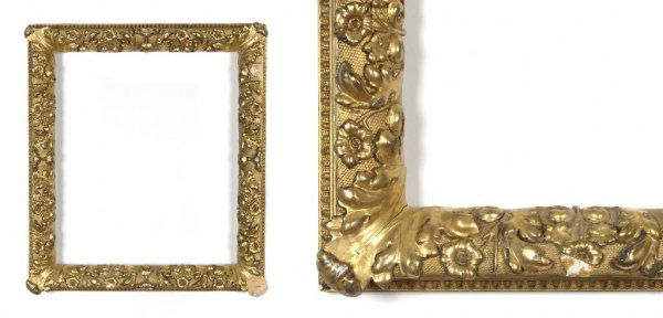 SoldAmerican Barbizon Gilt FrameAmerican, circa 1880, gilded frame with foliate ornamentation. Overall 15 1/4" x 18", Rabbet 7" x 10", Molding 4 3/8".See Sold Price