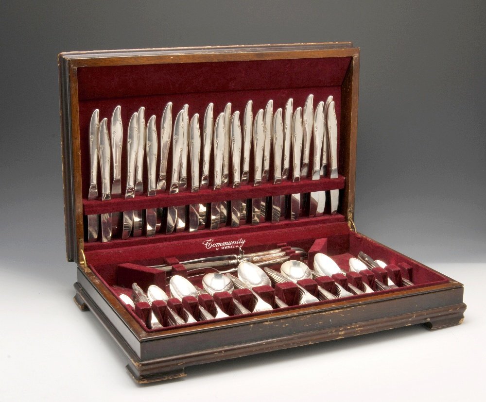 Reed and Barton Stainless Flatware Service for TwelveFeb 28, 2026Gorham Chantilly Flatware Sterling Silver Silverware 70 PiecesFeb 19, 2026Reed & Barton English Crown Silverplate Flatware Set 127 Pieces for 24Feb 20, 2026Wallace Rose Point Sterling flatware in velvet lined box, 11 knives, 12 salad forks, 12 dinnerFeb 24, 2026Towle Madiera Sterling Silver Flatware Set 40 Pieces for 8 with Storage ChestFeb 27, 2026Sheffield 1996 by Carr's A cased Elizabeth II sterling silver table service of flatware / canteen7 days LeftLunt Memory Lane Sterling Silver Flatware Set 46 Pieces with Storage Chest6 days LeftDavid Andersen Town Hall 830 Silver Flatware Set 65 Pieces with New Storage Chest7 days LeftTowle Legato Sterling Silver Flatware Set 48 Pieces for 12 with Storage Chest6 days LeftAlvin Chapel Bells Sterling Silver Flatware Service Dinner Set of 55 Pieces with Wooden CaseFeb 25, 2026English Mother-of-Pearl Fish Service, 24 Pcs.Mar 12, 2026101 Piece Fiddle Thread & Shell Silverplate Flatware Set by Various MakersFeb 28, 2026Gorham Lyric Sterling Silver Flatware Set for 8 - 43 Pieces with Storage ChestMar 04, 2026Reed & Barton English Crown Silverplate Flatware Set for 12 80 PiecesFeb 27, 2026Lunt William & Mary Sterling Silver Flatware Set for 8 46 pcs with Storage ChestFeb 27, 2026Lunt Eloquence Sterling Silver Flatware Set for 12 - 82 Pieces with Storage ChestMar 03, 2026