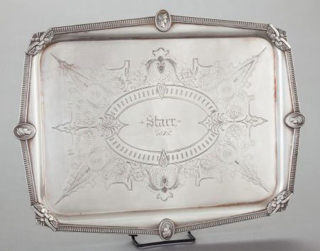 AN AMERICAN MEDALLION PATTERN SILVER-PLATED TRAY