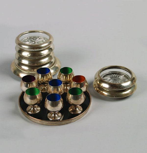 Vintage Glass & Metal Ashtray Lot (5 Pcs)4 hrs LeftDISCOVERY LOT OF STERLING SILVER TABLE ACCESSORIES6 days Left20pc Silverplated and Mixed Metal Tableware2 days LeftASSORTED SILVERPLATE DECORATIVE BOWLS & TRAYS1 day LeftVintage Silverplate Tidbit Handled Dish & Silvertone CandleholdersDec 23, 2025FINE AMERICAN STERLING SILVER MARITIME TROPHY LOT: NYYC 'WEATHERLY' 1959 & LARCHMONT RACE WEEK BOWLS6 days LeftAMERICAN SILVER WINE SET w. TRAY & SIX CUPS, 19c.Feb 07, 2026RUSSIAN SILVER WINE SET w. TRAY & SIX CUPS, 1858Feb 07, 20267pc Frank M Whiting & Co. and Paben Sterling Silver Glass Coasters3 days Left12 pc American Sterling TablewareJan 01, 2026Assorted Silver and Silverplated Tableware,9pc Saint Hilaire, Oneida and Other Silver Plated TablewareDec 21, 2025Christofle Silverplate Wine Coasters,Antique sterling silver 11pc group of decorative objects: 8 floral repouss? decorated coasters, 13 days LeftThirteen American Brilliant Cut-Glass Items3 days LeftMixed Grouping Sterling Silver Shakers2 days Left
