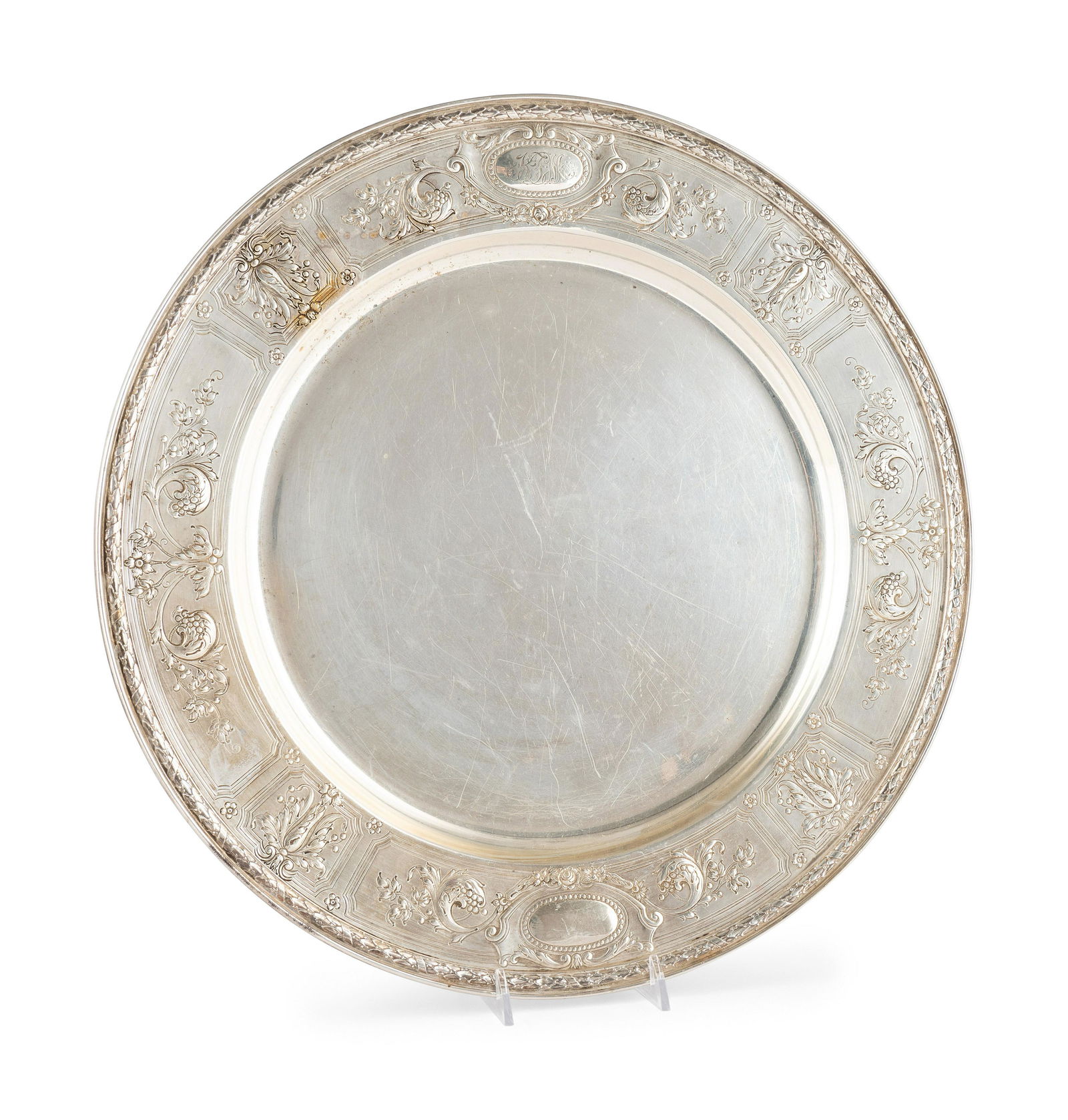 (3) AMERICAN STERLING SILVER DISHES, GORHAM & INTERNATIONAL SILVER CO.4 days LeftSilver Plated ChargerFeb 26, 2026London 1749 by William Peaston A George II sterling silver waiter or coffee pot stand41 mins LeftHandmade 925 Sterling Silver Engraved American Border Charger 13 InchesFeb 26, 2026George II English Silver Dish, Ayme Videau6 days LeftA French first standard silver charger, Francois Auguste Boyer Callot, Paris, late 19th centuryFeb 25, 2026George II Sterling Silver Small Salver6 days LeftGorham Sterling Silver Cinderella Flatware Plate Tray A20264Mar 04, 2026London 1921 by Goldsmiths and Silversmiths A George V sterling silver salver41 mins LeftAMERICAN SILVER LOW COMPORT BY SHREVE, 722gFeb 25, 2026INDO PERSIAN SILVER SALVER, 568gFeb 25, 2026(8) Gorham Sterling Butter Plates6 days LeftTowle 1967 “Contessina?? Silver Plated Footed BowlMar 05, 2026An English sterling silver footed waiter, Mappin & Webb, Ltd, Birmingham, 1930Feb 25, 2026GORHAM STERLING SILVER PLATE.3 days LeftSheffield 1905 by Atkin Brothers An Edwardian sterling silver salver41 mins Left