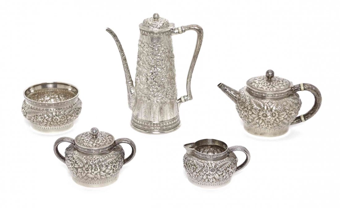 ASSORTED SIGNED PEWTER TABLE ARTICLES, LOT OF SIXMar 06, 2026ENGLISH SILVER LUSTRE CERAMIC TEA AND COFFEE ARTICLES, LOT OF SIXMar 04, 2026(5) ENGLISH ELKINGTON & CO. STERLING SILVER TEA & COFFEE SERVICE20 hrs LeftWilliam Hunter 1842 Sterling Teapot Set of Three7 days Left6 Piece Sterling Silver Tea and Coffee Set5 days LeftE.G. WEBSTER & SON SILVER-PLATED FIVE-PIECE COFFEE AND TEA SERVICEMar 04, 2026American Silver Four-Piece Tea and Coffee ServiceMar 14, 2026Four Piece Chinese Export Silver Tea and Coffee Set, Marked 'C.J'Mar 01, 2026A six piece German 800 standard silver tea and coffee service, Wilhelm Binder, Schwabisch Gmund4 days LeftSix-Piece Gorham Sterling Tea & Coffee Service5 days LeftFour-Piece Durgin Sterling Tea & Coffee Service5 days LeftF.B. Rogers Five-Piece Sterling Silver .925 Tea SetAmerican Aesthetic Silver-Plate Four Piece Coffee Service, late 19th c., Coffee- H.- 12 1/4 in., W.-6 days LeftContinental silver tea set.3 days LeftThree silver articlesMar 03, 2026American Silver 'Antique' Tea and Coffee ServiceMar 15, 2026