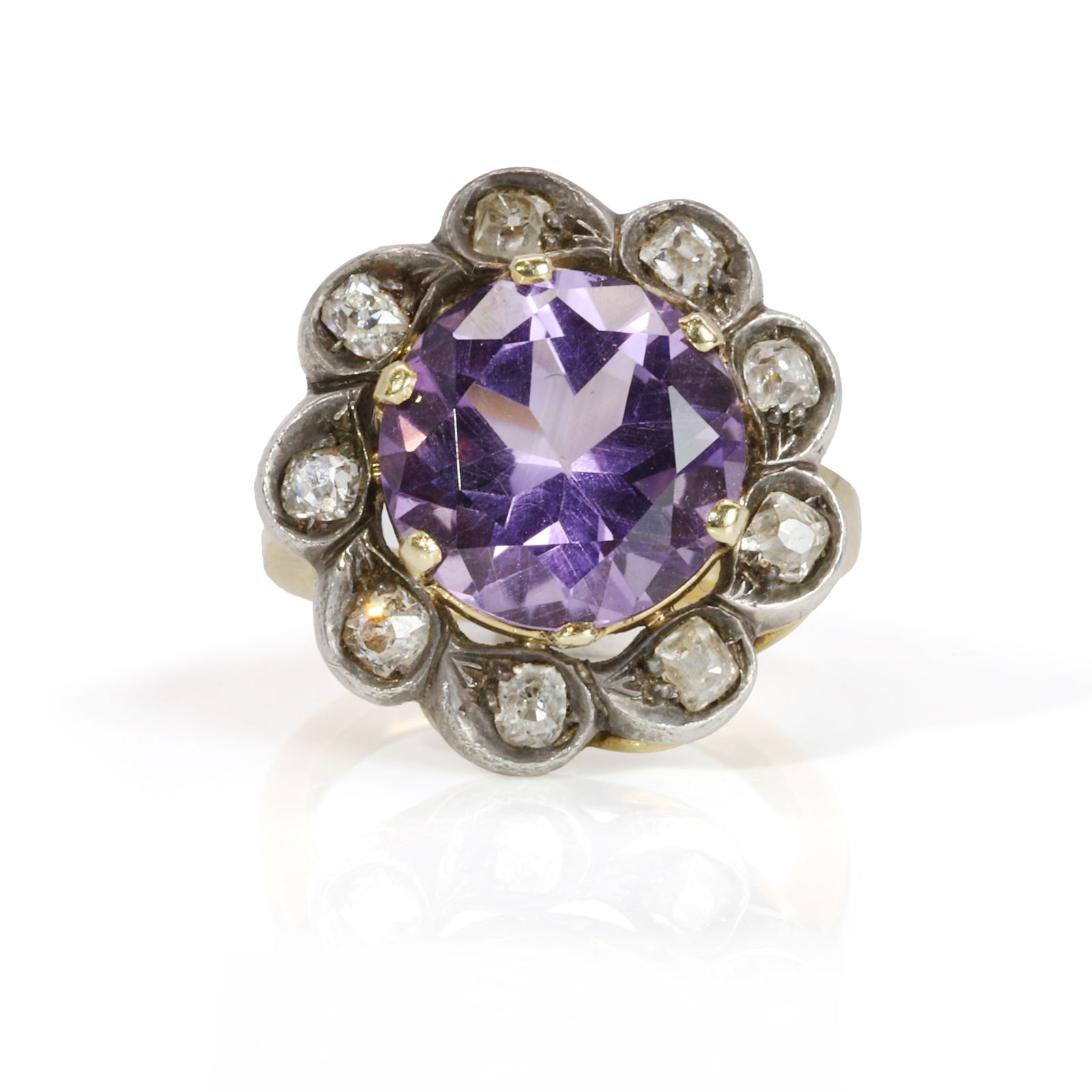 An amethyst and diamond floral cluster ring,