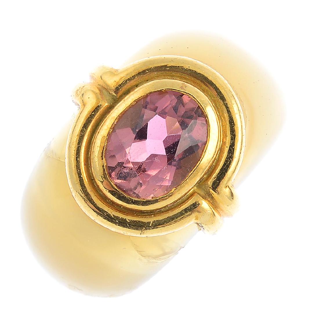 An amethyst and hardstone ring. The oval-shape amethyst