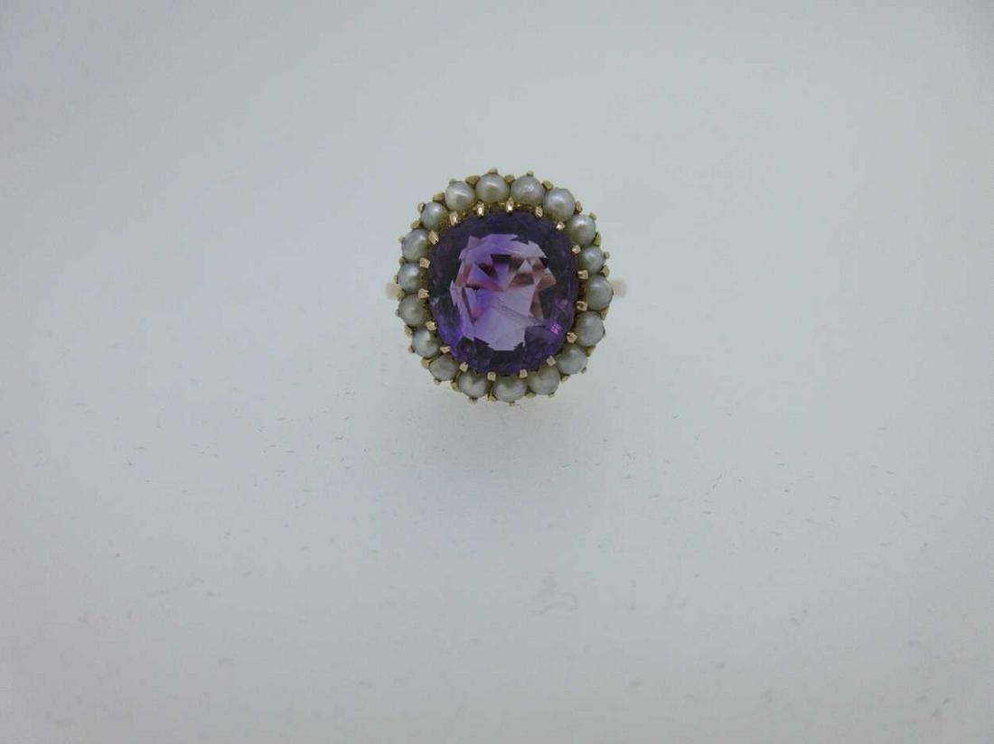 An amethyst and seed pearl cluster ring,