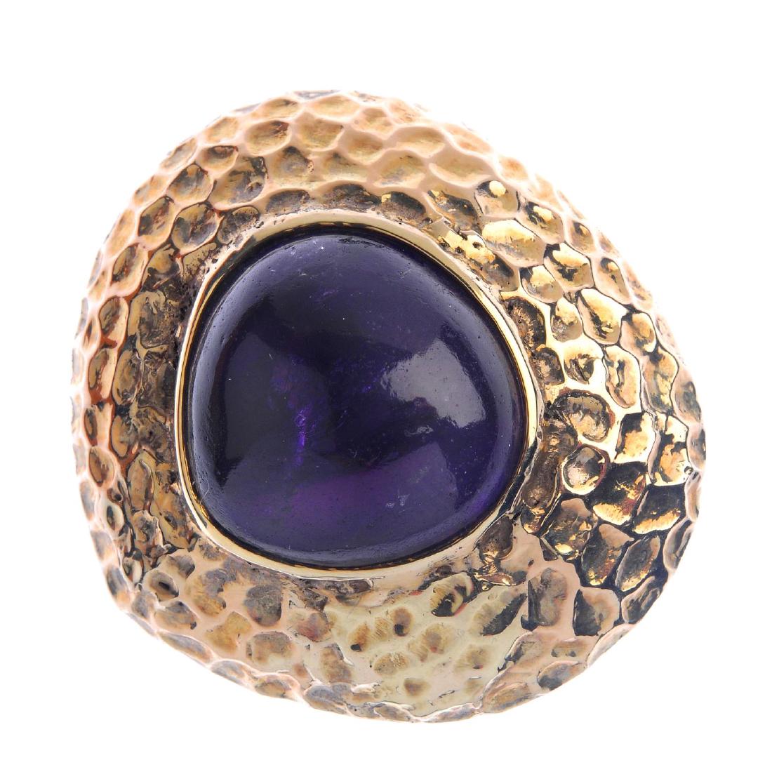 An amethyst dress ring. The triangular amethyst
