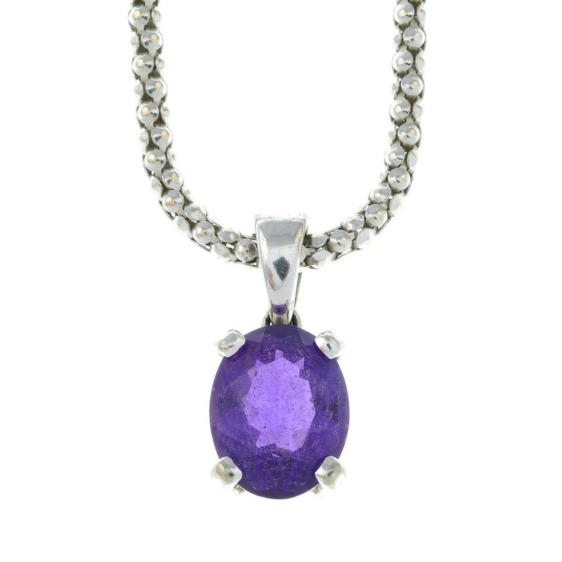 14K WHITE GOLD 0.05CT DIAMOND AND AMETHYST PENDANT NECKLACE