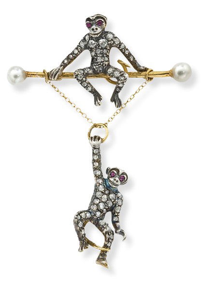 Pendant brooch with monkey motif, emeralds, spinels and diamondsTemplum Fine Art Auctions4.2(11)€500Mar 25, 2026