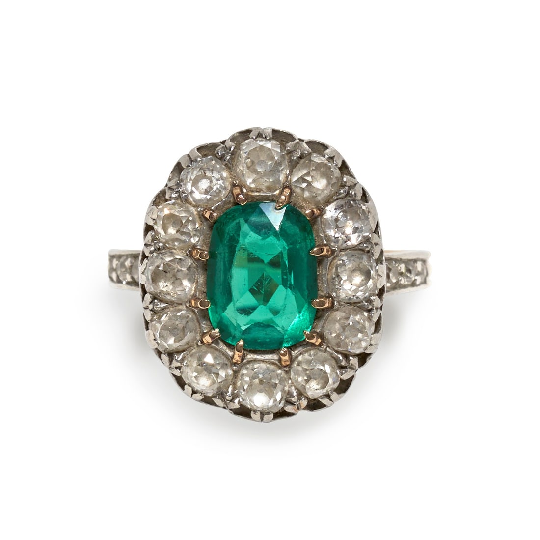 AN ANTIQUE EMERALD AND DIAMOND RING