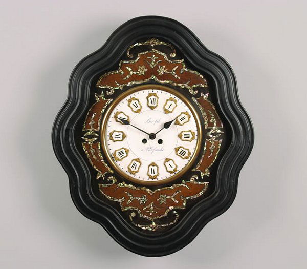 Napoleon III Style Marquetry and Ebonized Wall Clock