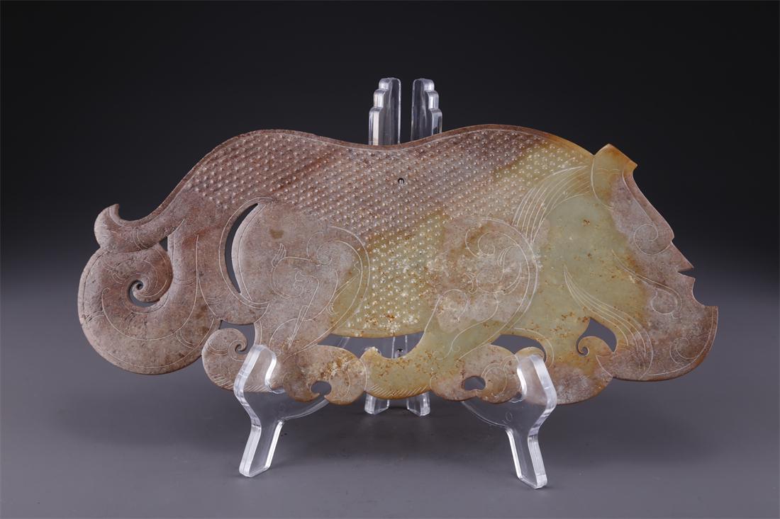 A ARCHAIC JADE CARVED AUSPICIOUS BEAST ORNAMENT