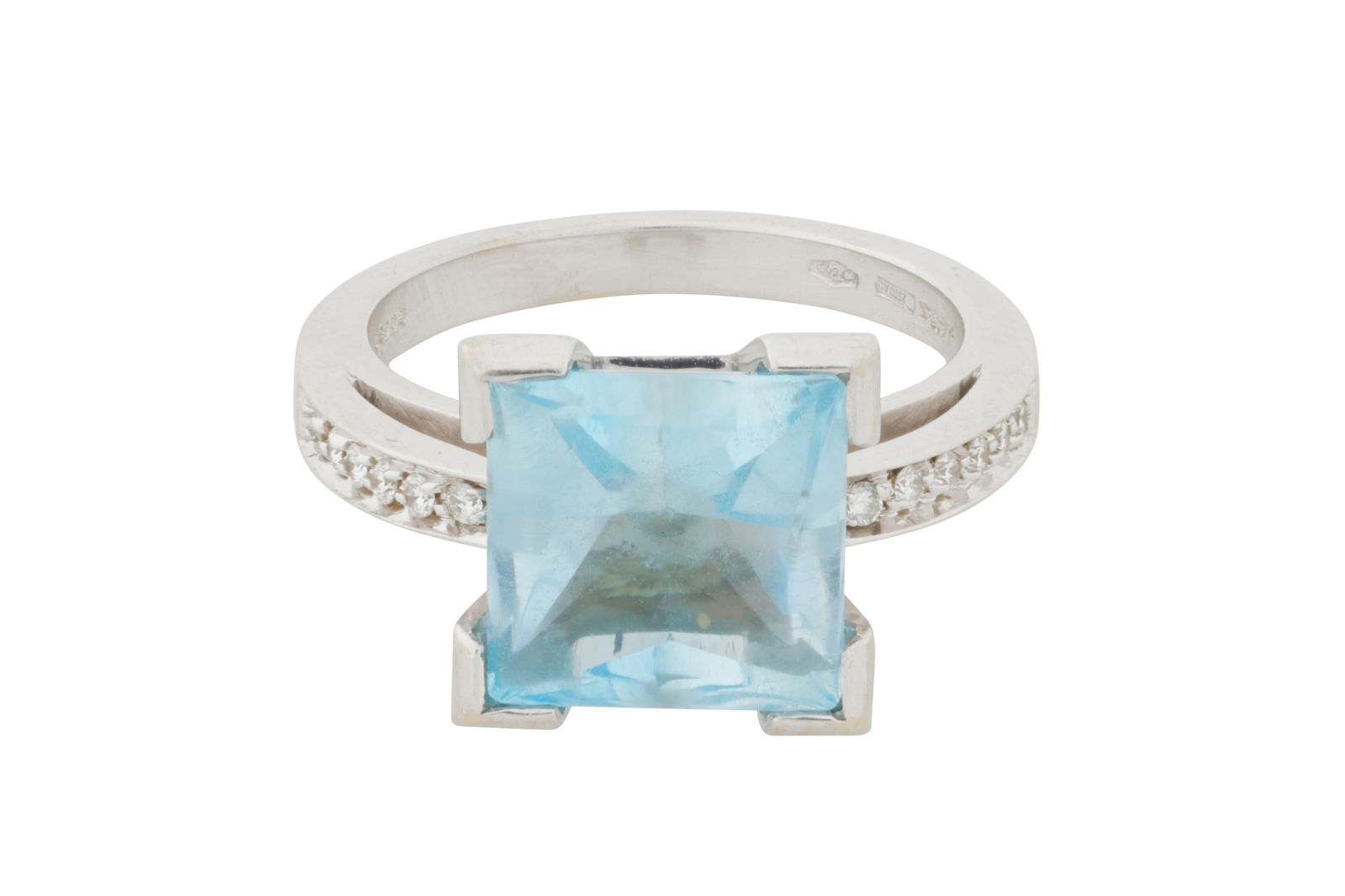 AN AQUAMARINE AND DIAMOND RING, CIRCA 2000