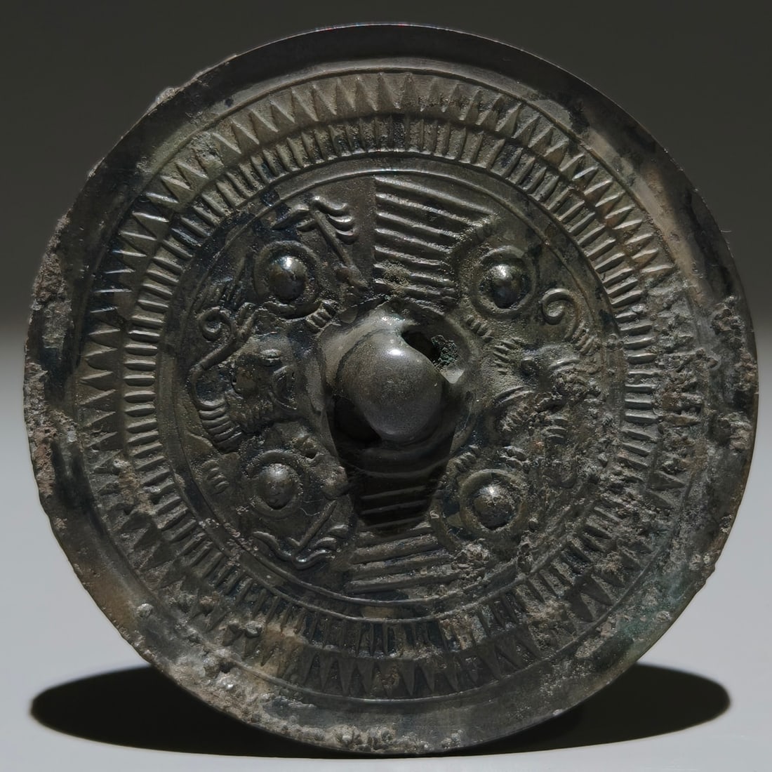An Archaic Bronze Auspicious Beast Pattern Round Mirror