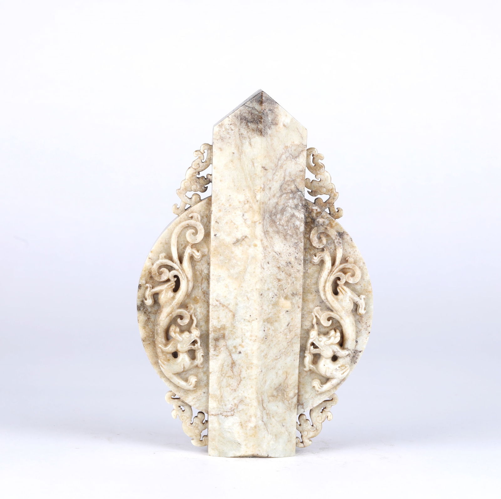 An Archaic Mottled Celadon Jade Tablet, Guibi