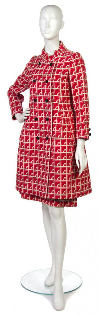 SoldAn Arnold Scaasi Red Wool Coat, No size.An Arnold Scaasi Red Wool Coat, with a high neckline, six front patch pockets, decorative covered button front closure and lined in black wool. Labeled: Arnold Scaasi. No size. Estimate $150-250 PropeSee Sold Price