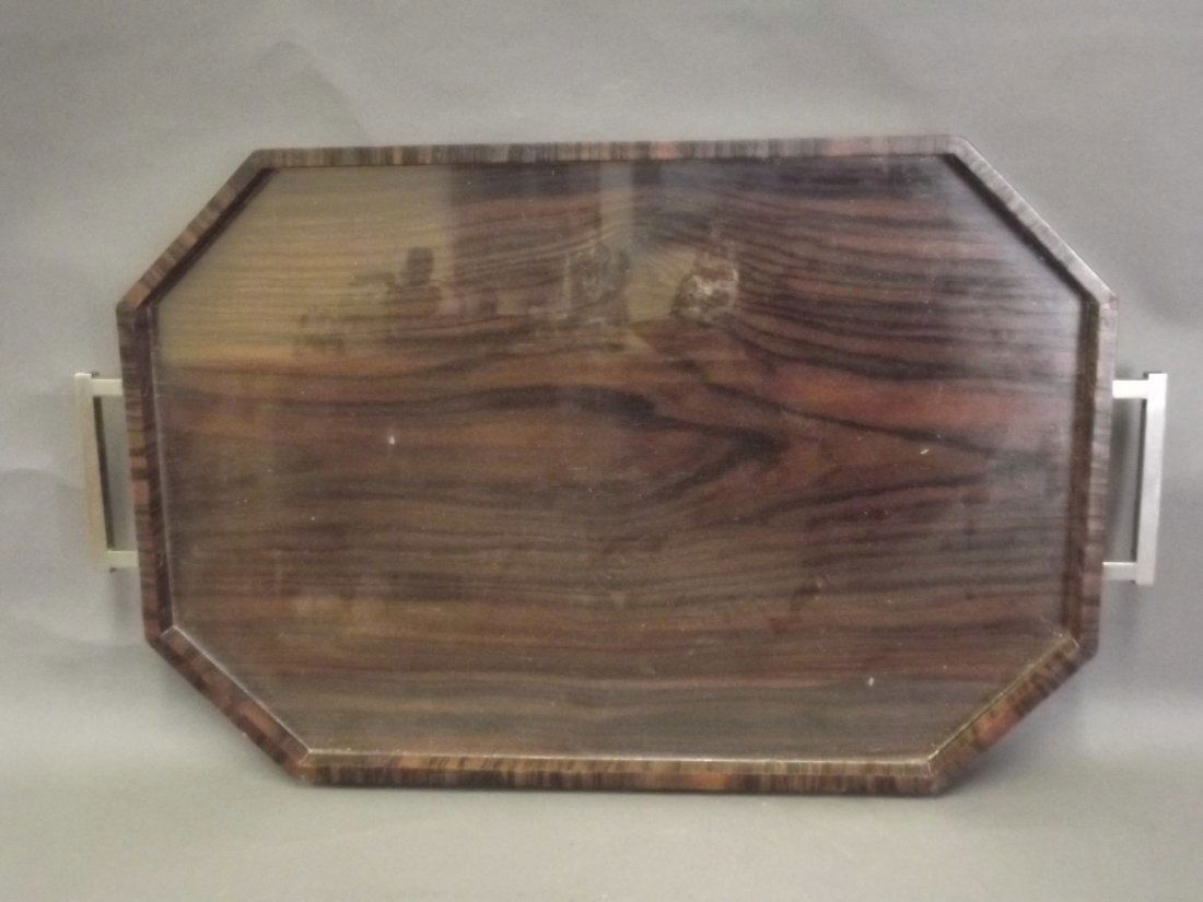 Mid-Century Modern Inlaid Wood Veneer Serving Tray with Chrome HandlesTeel Auctions4.4(113)$10Mar 10, 2026