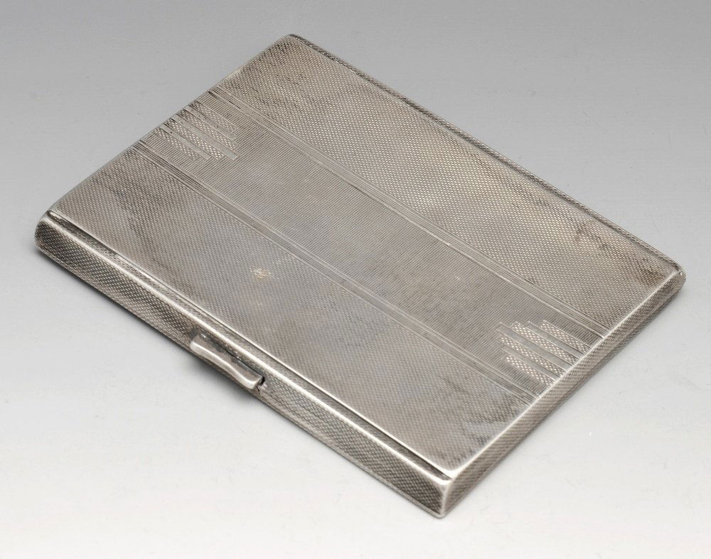 An Art Deco silver cigarette case.