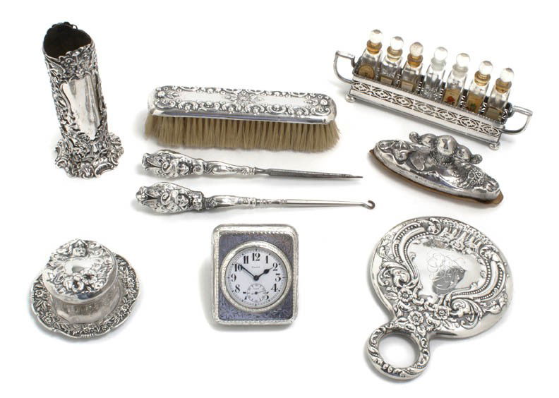 Lot of Sterling SilverFeb 21, 2026Lot of silver cutlery113 Lots AwayEstate lot STERLING SILVER, older flatware, childs utensils, tea strainer and serving large4 days LeftLarge Group Lot of Sterling Silver JewelryFeb 18, 2026Lot of Sterling Silver Rimmed and Topped ItemsFeb 12, 20268 Piece Assorted Sterling Silver Sewing Lot: 2 Sterling Silver Handles Knitting Hooks; 4 ThimblesFeb 15, 2026Group of Vintage Sterling Dresser Items2 days LeftGroup of Assorted Silverplated Table and Dresser Articles2 days Left(11pc) GROUP OF MISC. SILVER HOLLOWAREFeb 22, 2026Group of Sterling Silver Desk Articles3 days LeftSterling Silver Flatware, Rattles & Mirror1 day LeftMiscellaneous Silver Cutlery & Sixteen Small Silver Salt Shakers6 days LeftAn Assembled Twelve Piece S. Kirk & Son Repousse Sterling Silver Desk SetFeb 12, 2026GROUP OF SILVER AND CUT GLASS DESK ITEMS10 hrs Left(4) Solid Silver Vanity Items4 days Left(4) Solid Sterling Silver Handled Vanity Items Including4 days Left