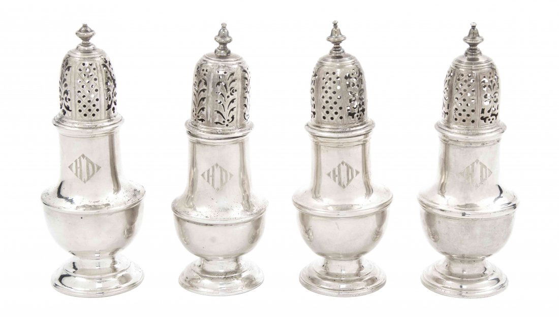 4PC LOT WEIGHTED STERLING SILVERMar 07, 2026TOWLE AND OTHER WEIGHTED STERLING SILVER SHORT CANDLESTICKS / CANDLEHOLDERS, LOT OF EIGHTMar 04, 2026DUCHIN CREATIONS AND OTHER WEIGHTED STERLING SILVER CANDLEHOLDERS AND SHAKERS, LOT OF EIGHTMar 04, 2026A composed lot of four religious silver and silver-plated brass church objects1 day LeftLot of Georgian sterling silver. 1) Pair of shakers. John Crouch and Thomas Hannam. London, 1796.7 days Left2 pc Lot Victorian Meriden & Rogers Silverplate Cruet Condiment Castors6 days LeftPair Queen Anne English Silver Casters, Joseph Ward2 days LeftA set of four Neoclassical style weighted sterling silver candlesticksMar 03, 2026Cased George III Sterling Silver Tea Caddy SetMar 16, 2026Five American Sterling Silver Table ArticlesMar 13, 2026Pair Of Gorham Strasbourg Sterling Silver 3-Light Candelabras6 days LeftTWO PAIRS OF GEORGE II CAST SILVER CANDLESTICKSMar 03, 2026Set of Four George III Sterling Silver CandlesticksMar 16, 2026Tiffany & Co. Makers sterling silver set of 4 ornate allover floral repousse salt and pepper7 days Left4 candlesticks. 925 silver. Birmingham. England.5 days LeftSet Of 4 Silver Salt Shakers4 days Left