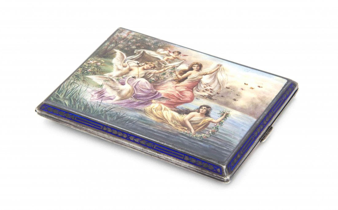 An Austrian Enameled Silver Cigarette Case, Height 3 x