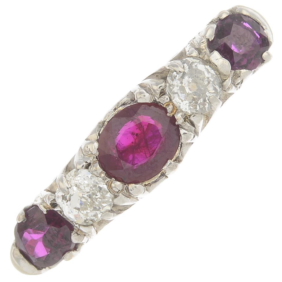 An early 20th 18ct gold ruby and diamond five-stone