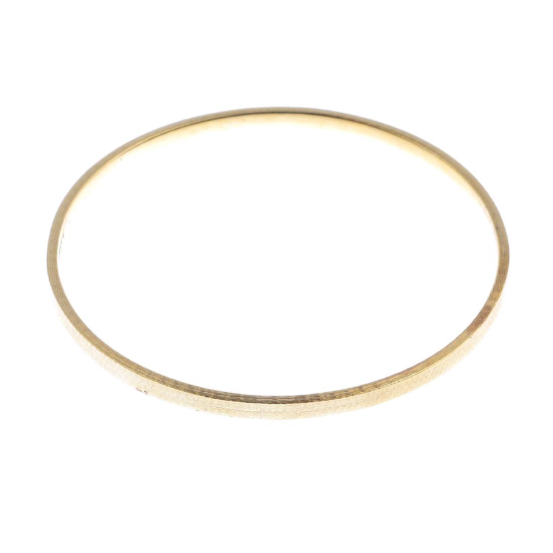 An early 20th century 9ct gold bangle, with engine