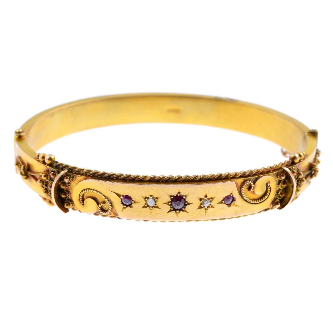 An early 20th century diamond and ruby bangle. The