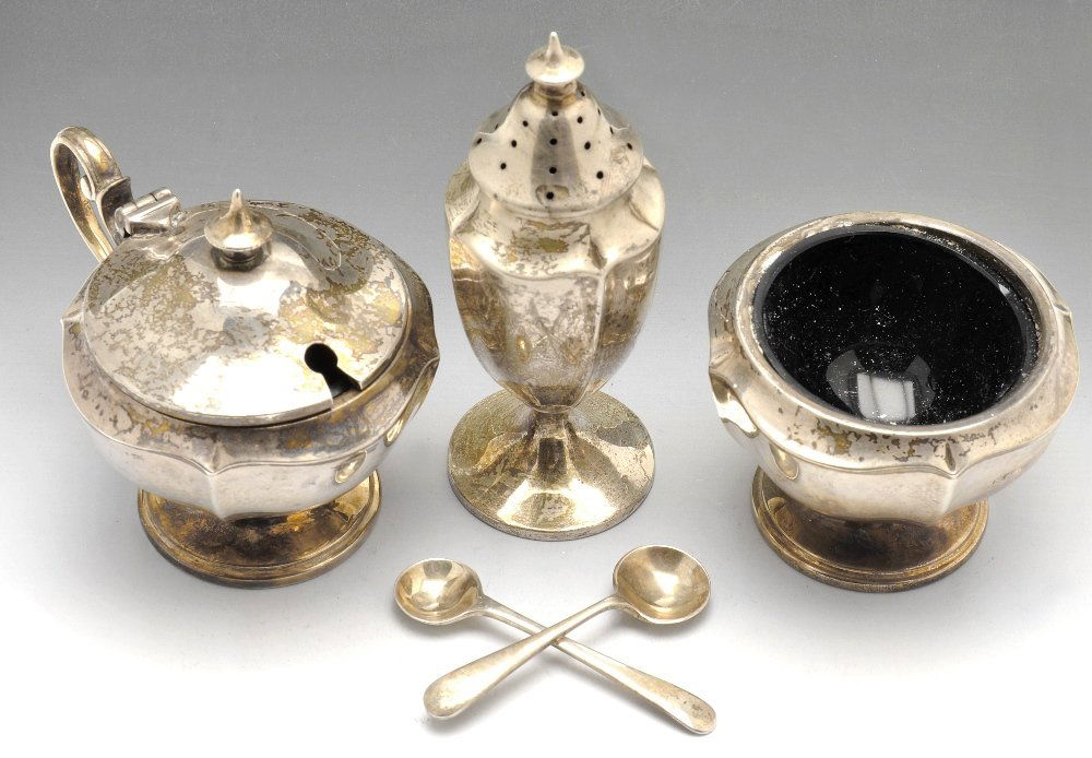 Lot of Weighted Sterling Silver Pieces5 days LeftLot of 2 Wallace Sterling Silver Items & AnotherFeb 18, 2026Lot of Assorted Silver Plate, etc. Including Creamer and Sugar, Cups, Pitcher, etc2 days LeftA composed lot of four religious silver and silver-plated brass church objectsFeb 24, 2026Sterling 925, 800 French Silver & Silverplate LOTFeb 26, 2026William Hunter 1842 Sterling Teapot Set of ThreeFeb 28, 20263 silver mustard pots, a crystal salt coupe on a silver base and two silver salt cellars with blueFeb 15, 2026George V Silver Condiment Set, Mark of William Aitken5 days LeftSilver mustard and salt set with blue glass inserts, richly decorated with openwork rocaille andFeb 15, 20267 Sterling Silver Table ArticlesFeb 26, 2026A Group of Sterling Silver Table ArticlesFeb 15, 2026A Trio of Silver-Plated and Cut Glass Trinket Vessels including GodingerFeb 15, 2026VINTAGE STERLING SILVER TABLEWARE COLLECTIONFeb 21, 2026ANTIQUE AND VINTAGE SILVER PLATED TABLEWARESFeb 22, 2026Gorham Plymouth sterling silver partial tea/coffee service, 3pc: lidded sugar bowl, creamer, wasteFeb 21, 2026Three Silver Table Items24 hrs Left