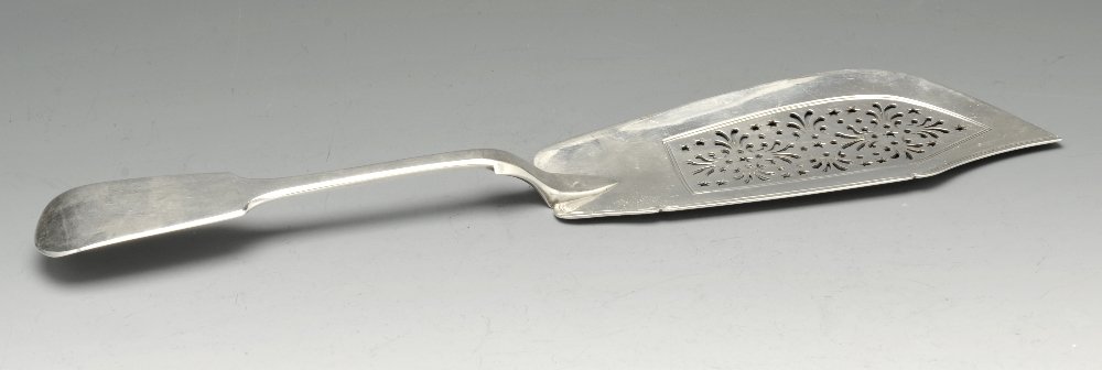 SoldA William IV silver fish slice, London 1835 by MaryA William IV silver fish slice, London 1835 by Mary Chawner, fiddle and thread pattern, 32.5 cm, 7 ozt.See Sold Price